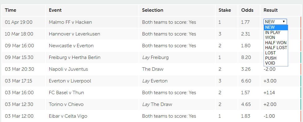En viktig aspekt när man bettar är att bokföra sina spel. Detta görs främst för att få en överblick hur man faktiskt presterar på oddsmarknaden. Samtliga på Dagens Bästa Spel bokför sina spel hos Bettin.gs. Ett utmärkt redovisningsverktyg för betting!